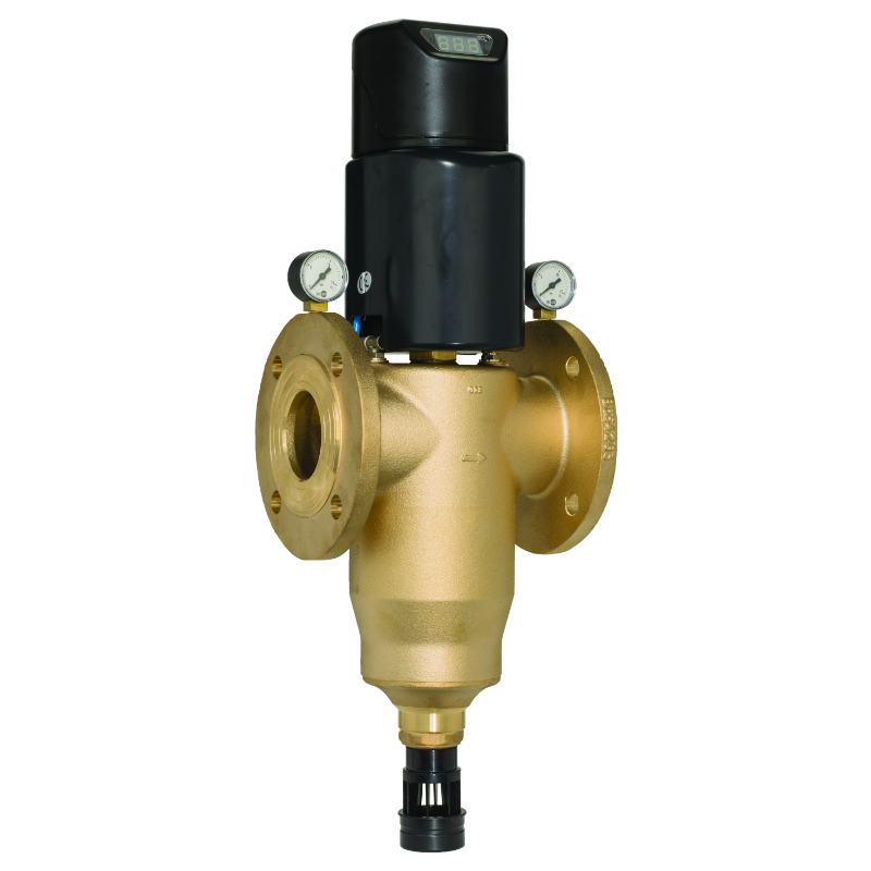 Vỏ bọc bằng đồng đỏ, các bộ phận lọc và xả ngược, vành nối PN 10 với màng lọc thép không gỉ kích thước 100 micro (hoặc 200 micro theo yêu cầu).